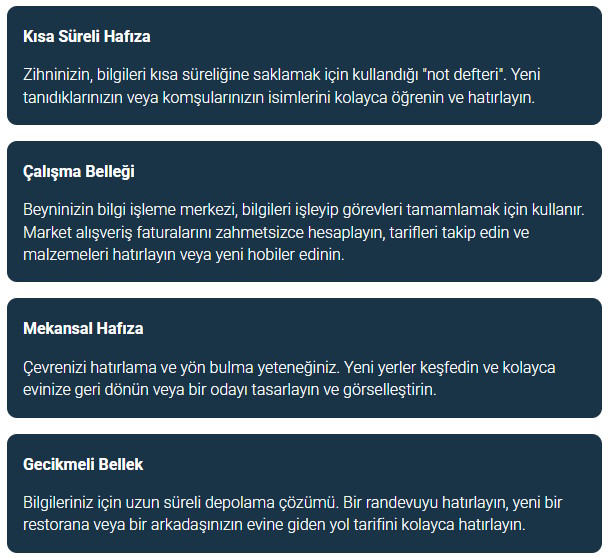 İsimleri hatırlamakta zorlanıyor, önemli eşyaları unutuyor veya yol tariflerini hatırlamakta güçlük çekiyor musunuz? Bunların hepsi hafıza kaybının yaygın belirtileridir. NeeuroBike, zihninizi keskinleştirmenin ve unutkanlıkla mücadele etmenin eğlenceli ve ilgi çekici bir yolunu sunuyor.